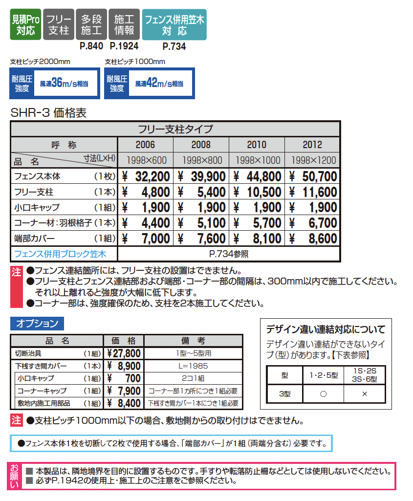 見積りシステム対応、フリー支柱、多設施工、フェンス併用笠木対応