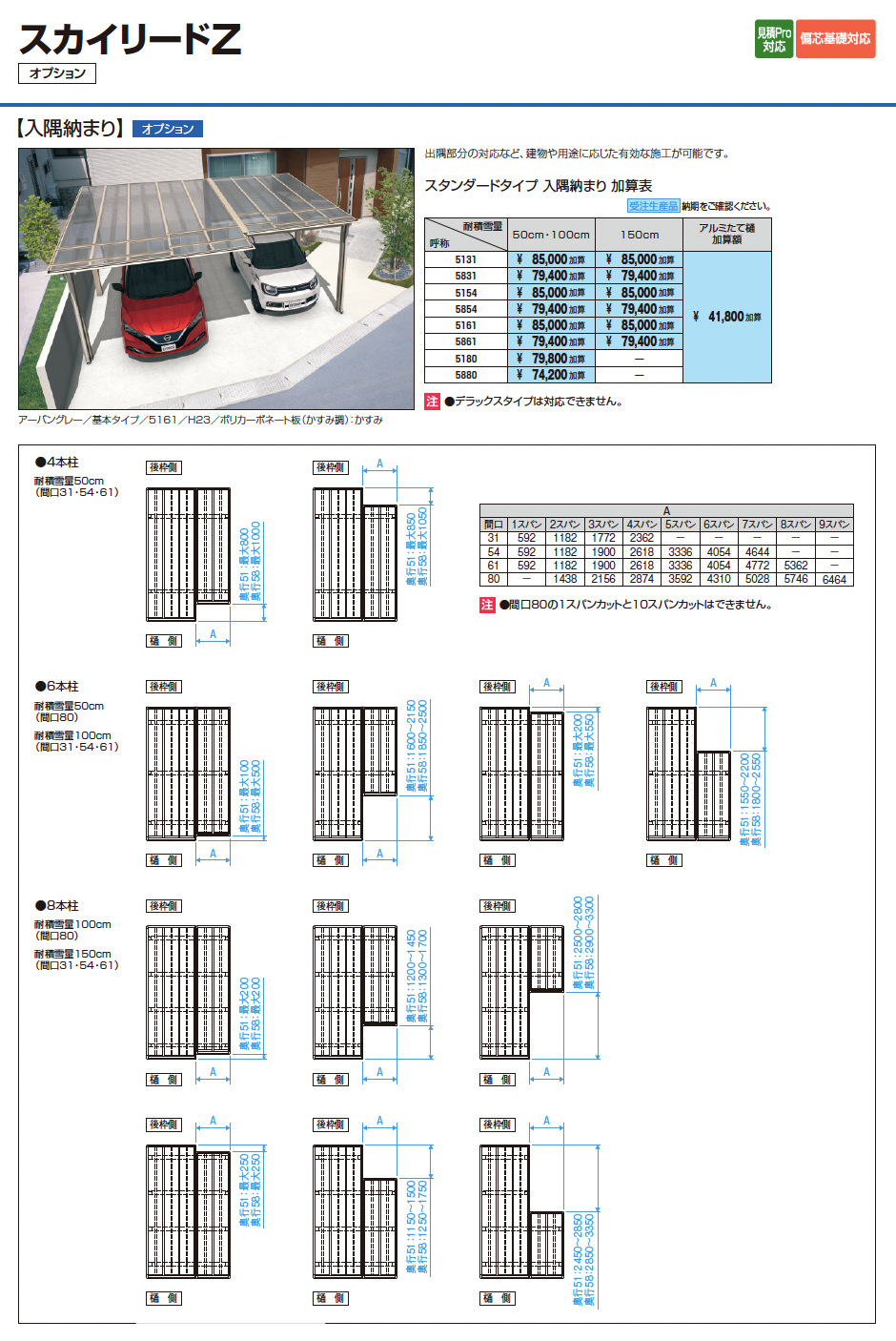| 強度 | 基準風速Vo=40m/s 耐積雪量約100cm相当 耐積雪量約150cm相当 |