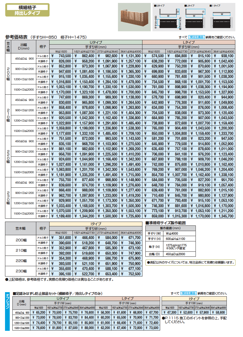 バルコニー手すりM型(横細格子 持出しタイプ)_価格_2