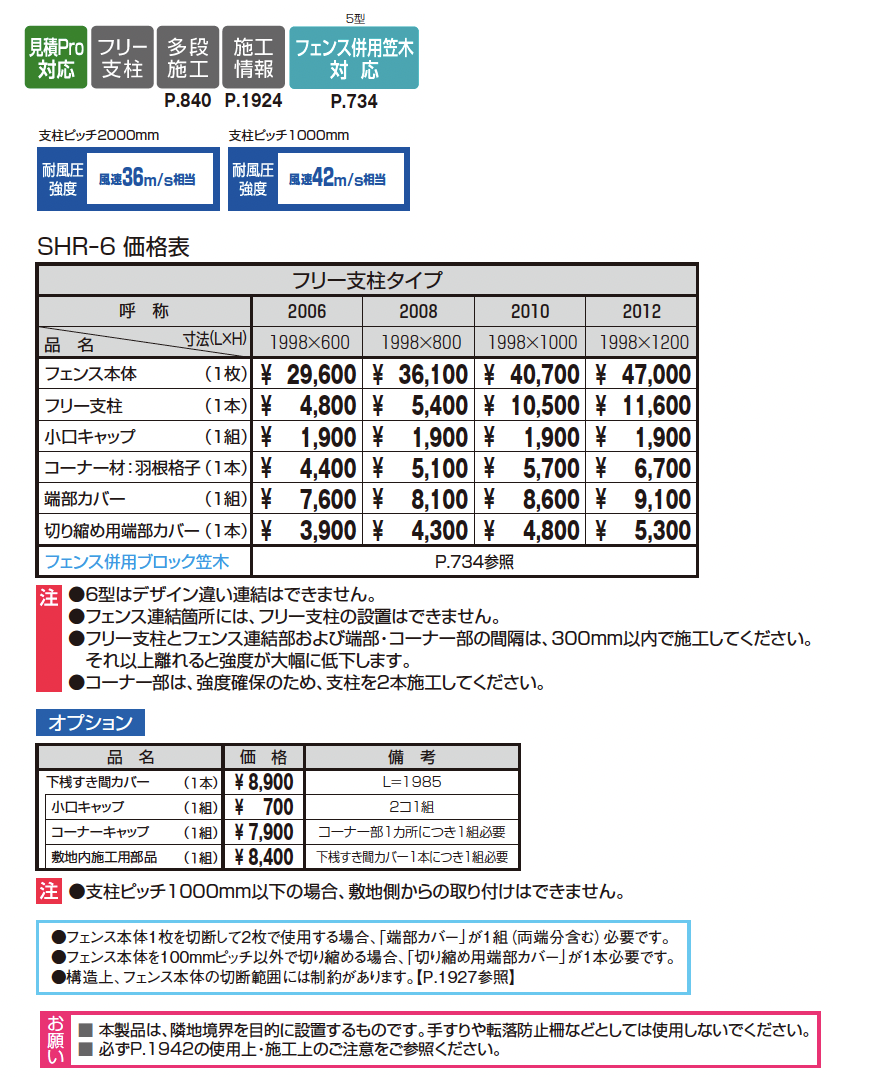 見積りシステム対応、フリー支柱、多設施工、フェンス併用笠木対応