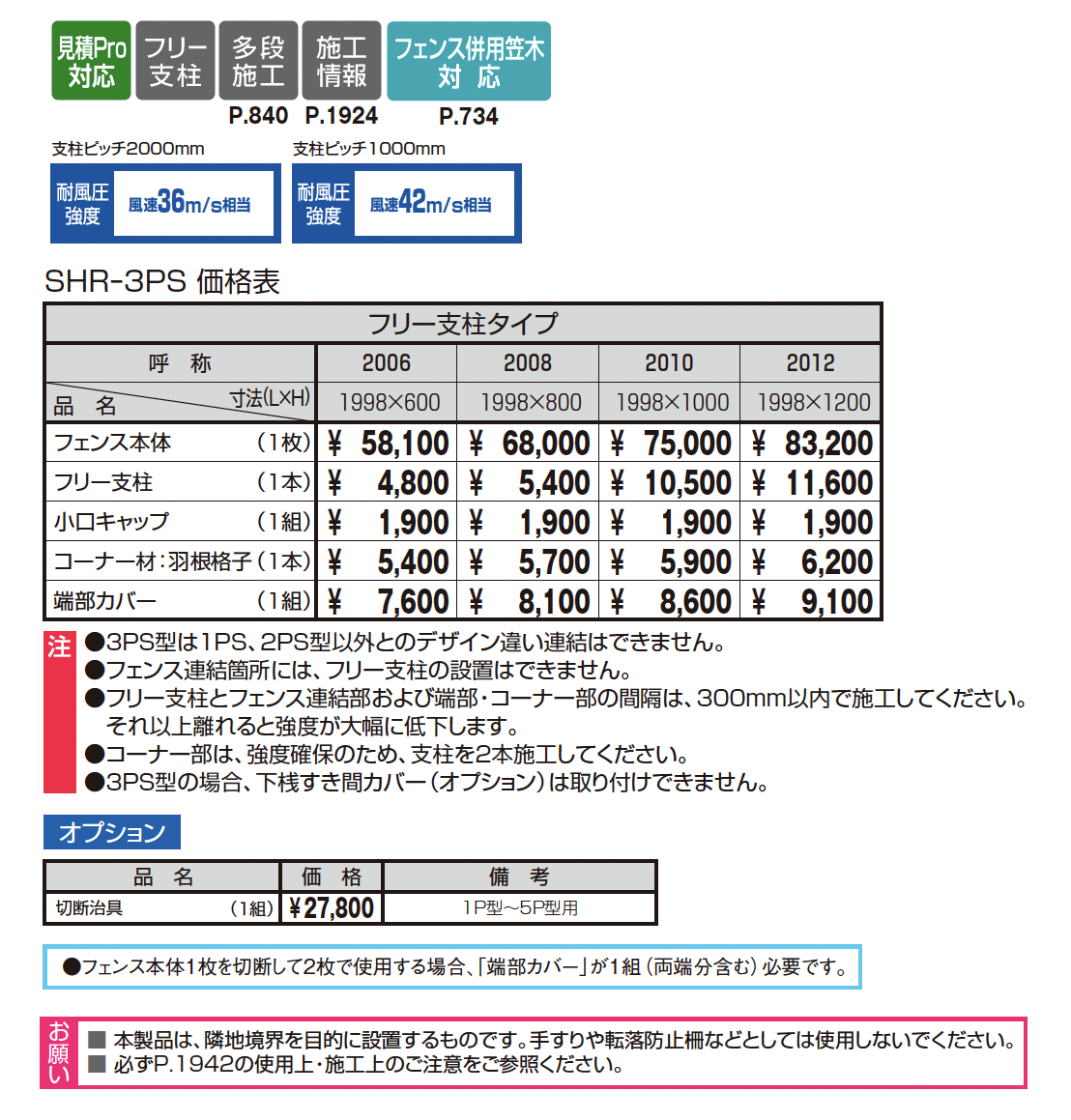見積りシステム対応、フリー支柱、多設施工、フェンス併用笠木対応