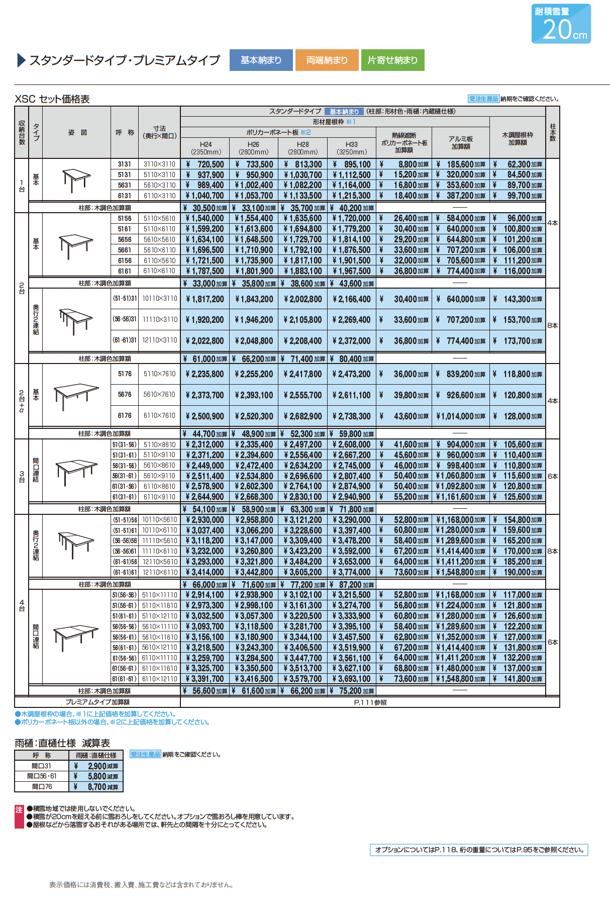 | サイズ | 収容台数1台 収容台数2台 収容台数2台+a 収容台数3台 収容台数4台 |