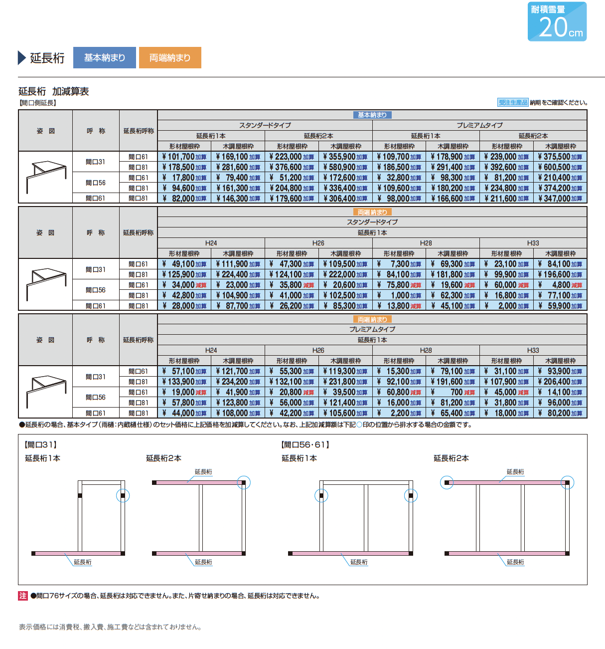 | 強度 | 基準風速Vo=40m/s 耐積雪量約20cm相当 |