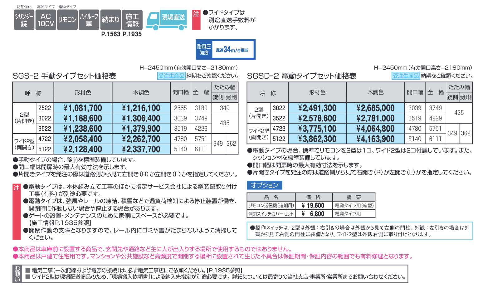 シリンダー錠(防犯強化)、AC100V(電動タイプ)、リモコン(電動タイプ)、ハイルーフ車