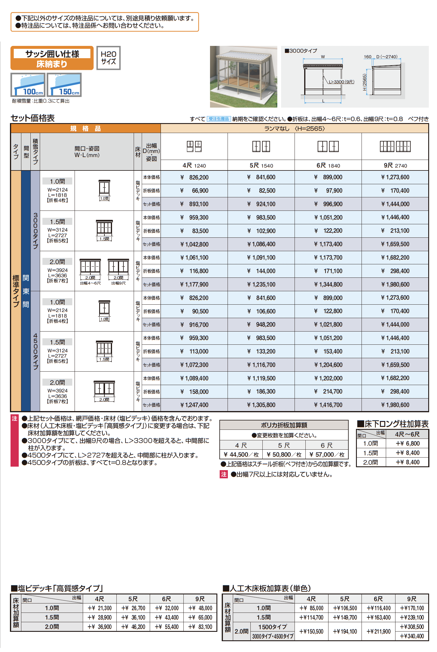 スーパーテラスGTⅡ(サッシ囲い仕様 床納まり H20サイズ 標準タイプ)