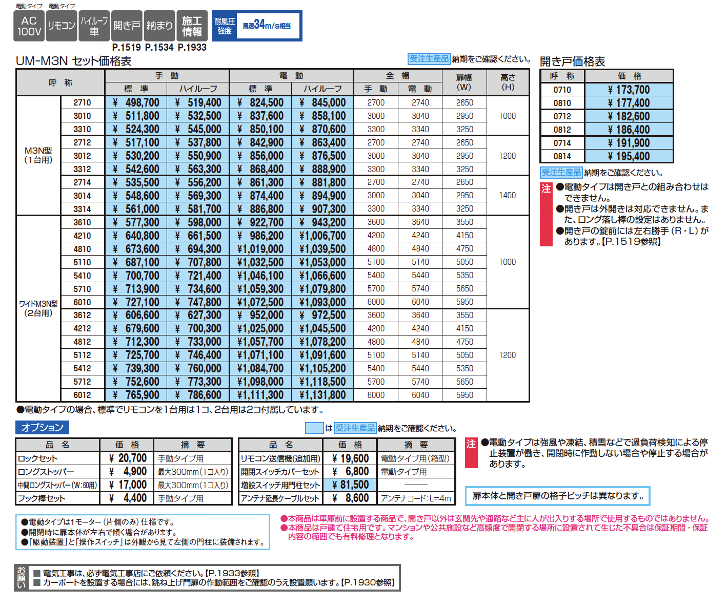 AC100V(電動タイプ)、リモコン(電動タイプ)、ハイルーフ車、開き戸