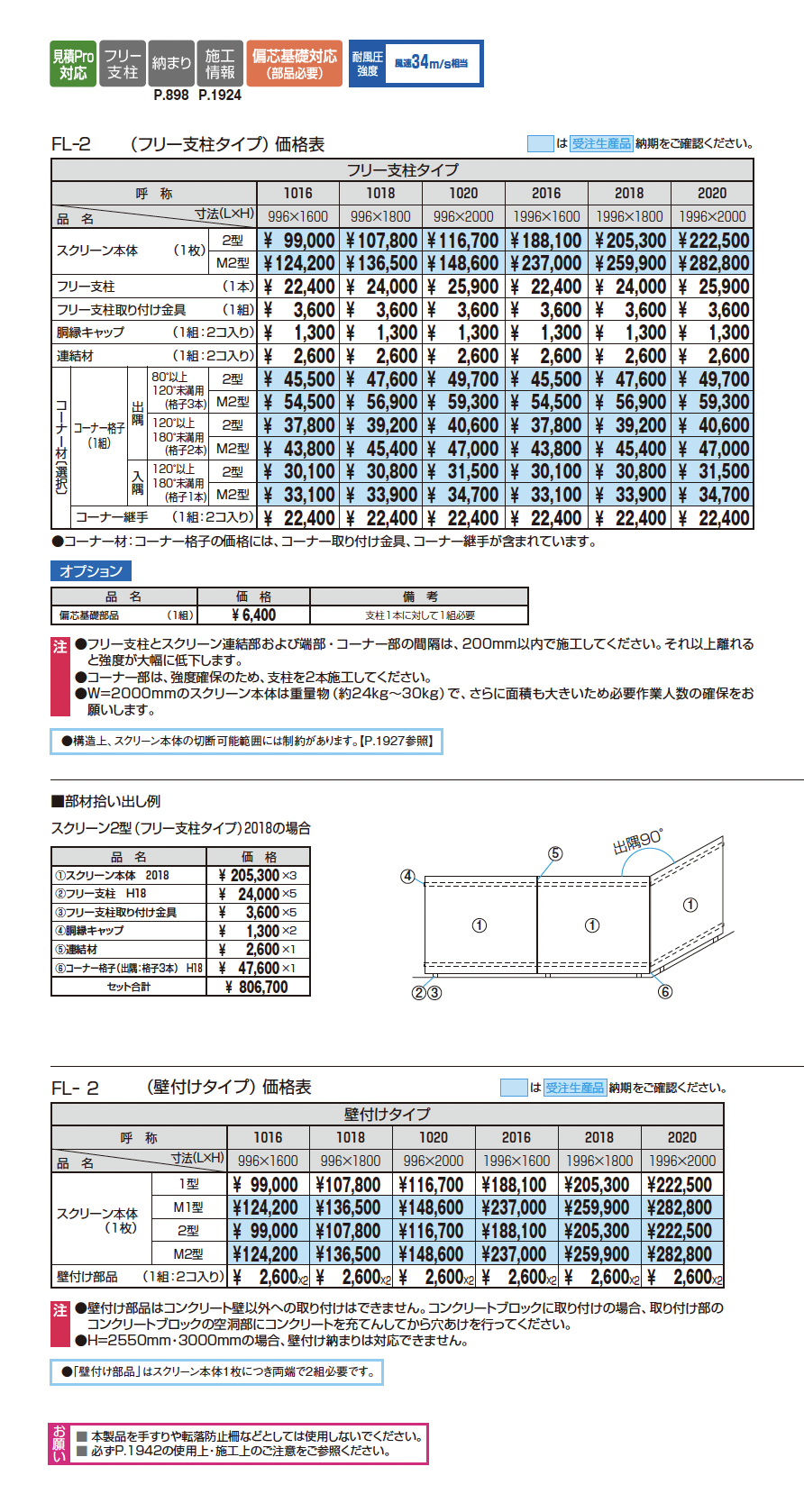 見積りシステム対応、フリー支柱、偏芯基礎対応(部品必要)