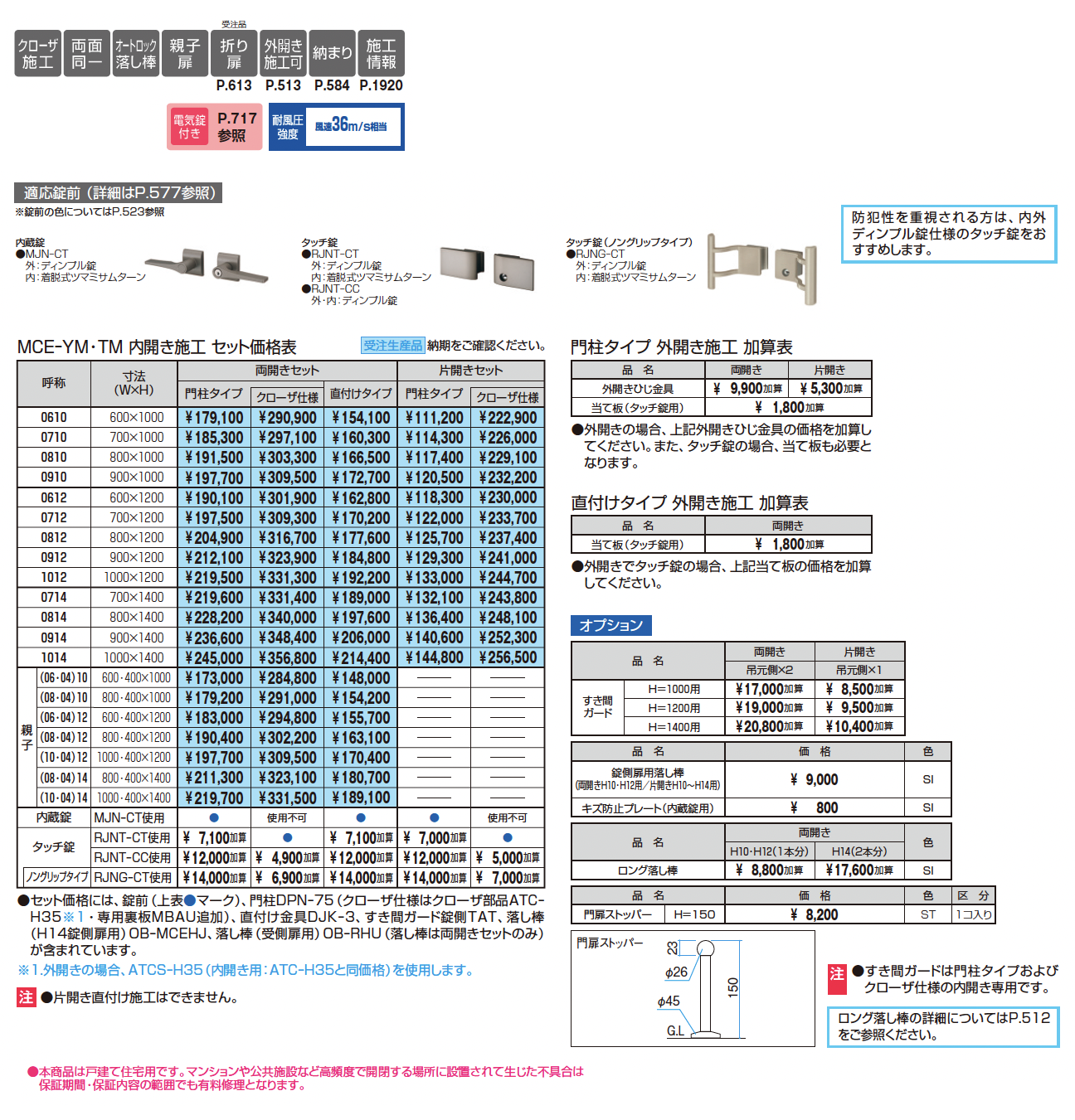 クローザ施工、両面同一、オートロック落し棒、親子扉、折り扉(受注品)、外開き施工