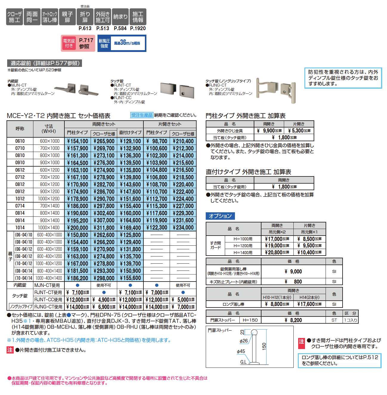 クローザ施工、両面同一、オートロック落し棒、親子扉、折り扉(受注品)、外開き施工