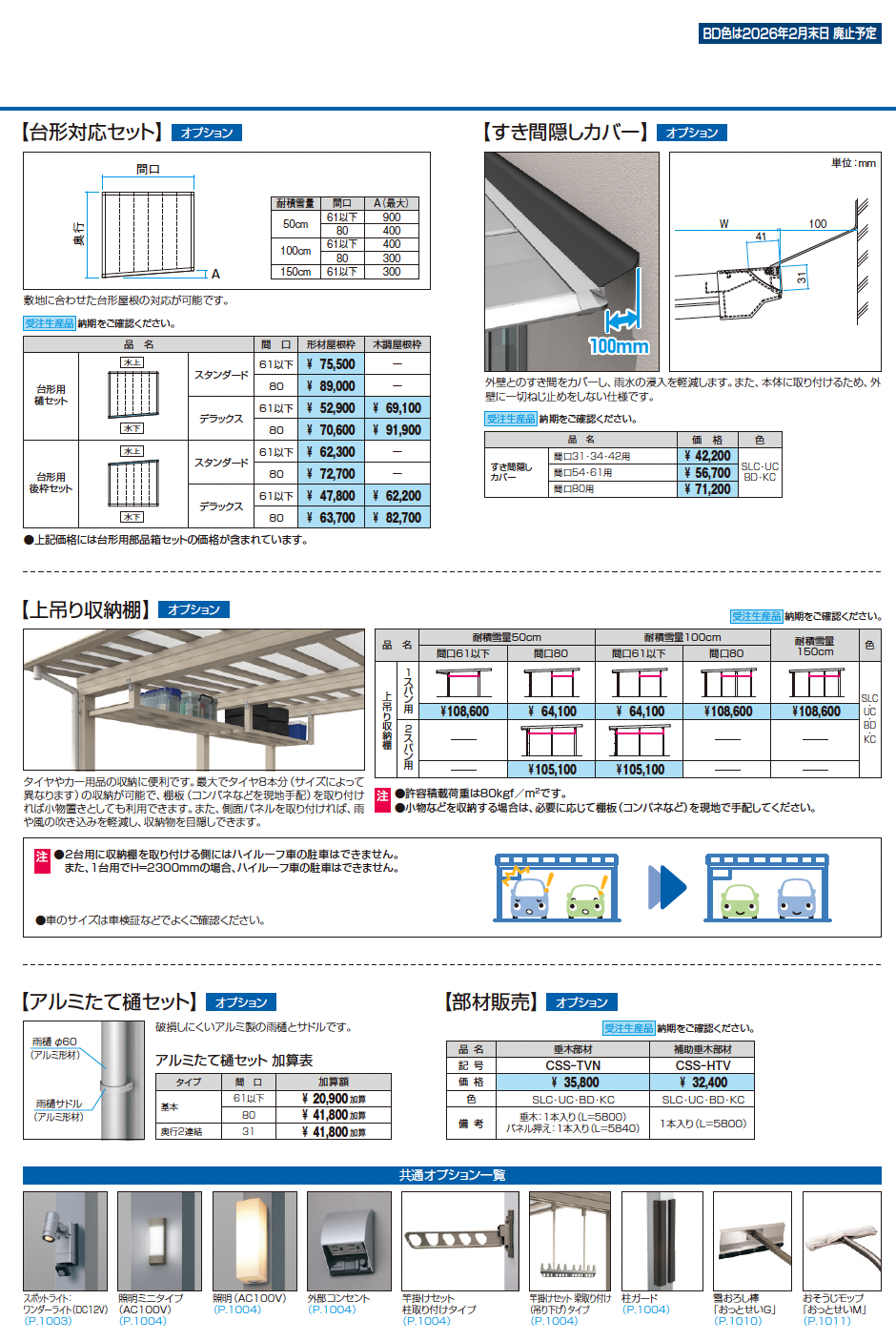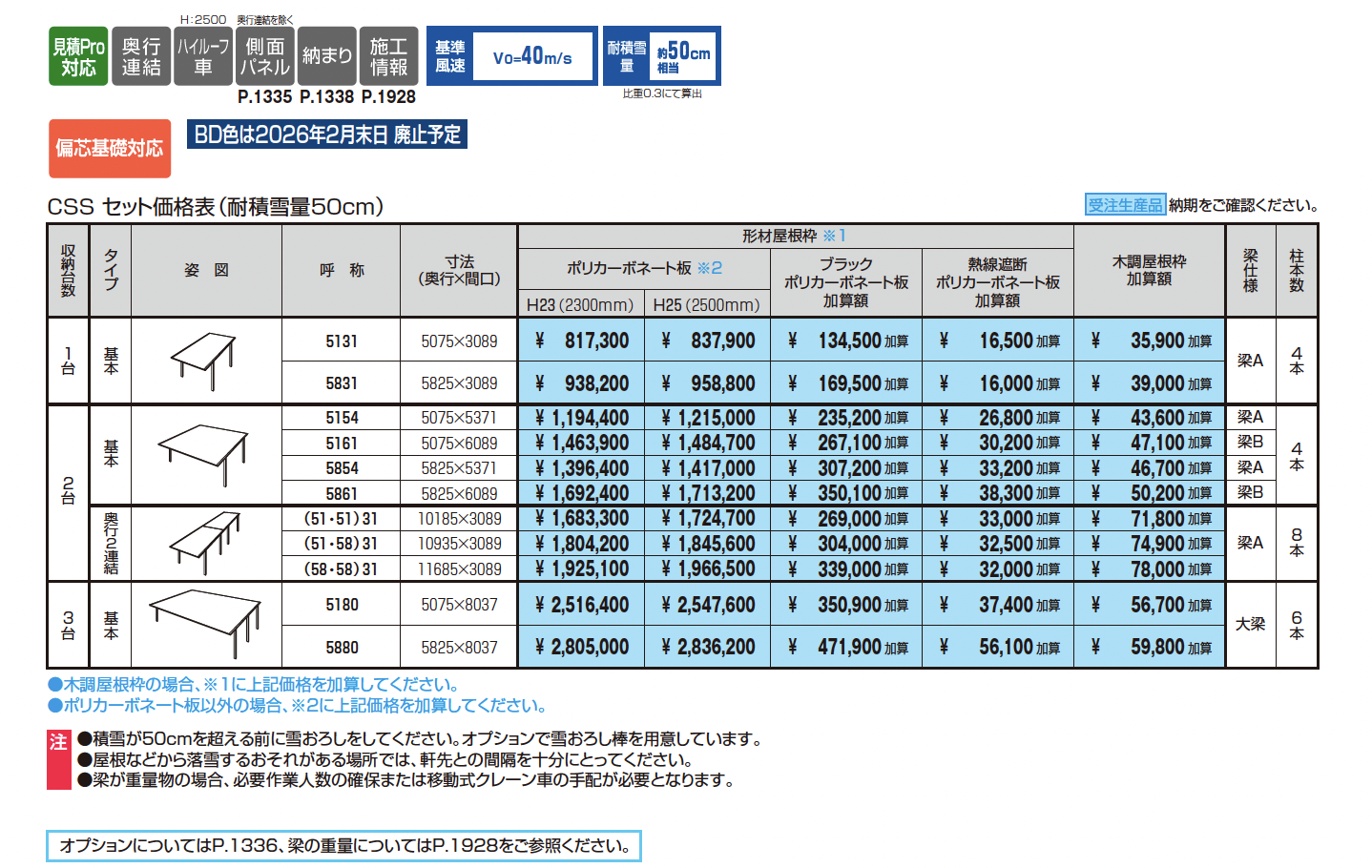 見積りシステム対応、奥行連結、ハイルーフ車(H:2500)、側面パネル(奥行連結を除く)、偏芯基礎対応