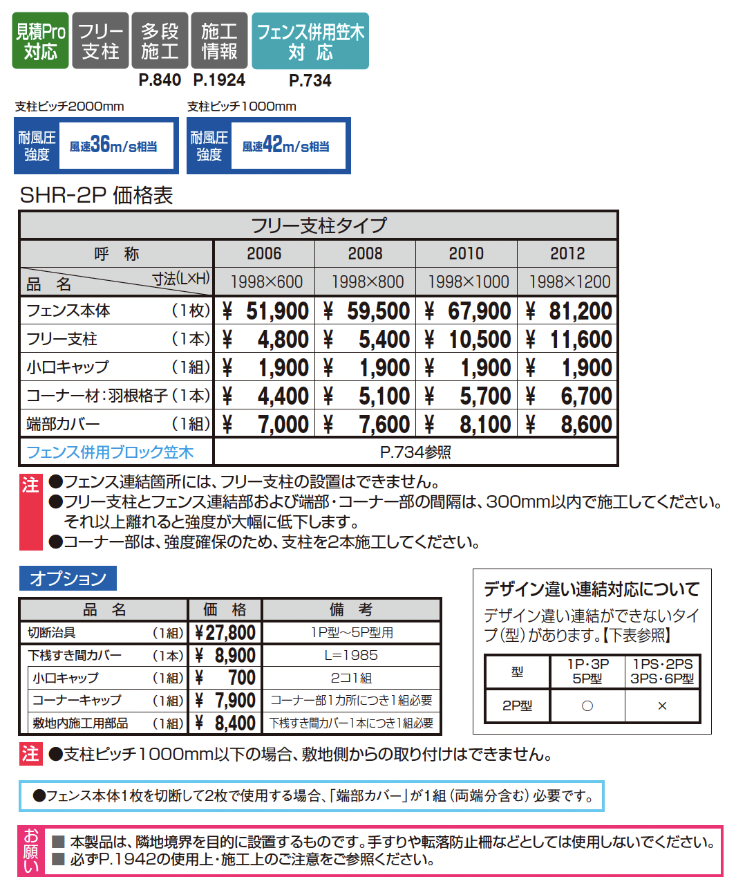 見積りシステム対応、フリー支柱、多設施工、フェンス併用笠木対応