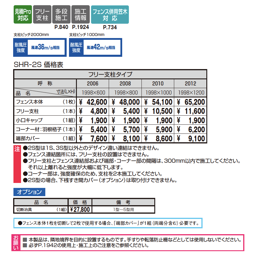 見積りシステム対応、フリー支柱、多設施工、フェンス併用笠木対応