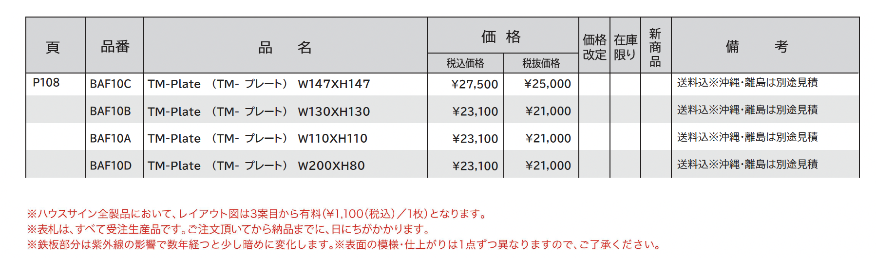 | 新旧品 | ハウスサイン TM-プレート【2024年版】(エクステリア&ガーデンコレクション2023-2024) |