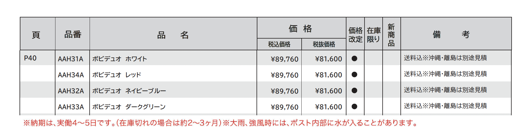| 標準納期 | 4~5日(在庫切れの場合は約2~3ヶ月) |
