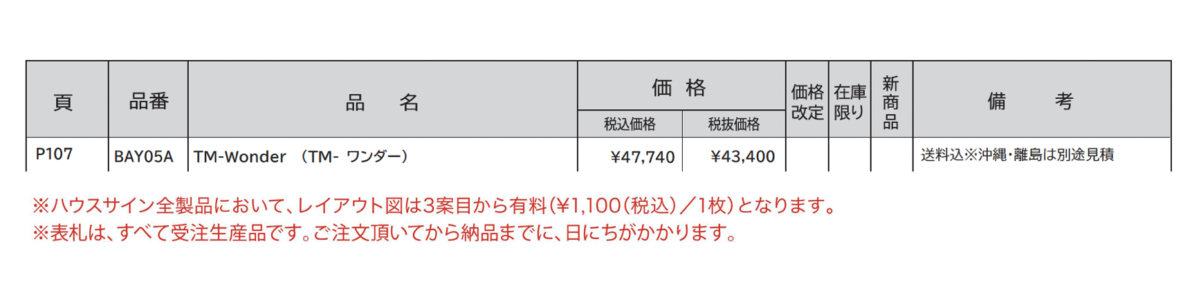 | 新旧品 | ハウスサイン TM-ワンダー【2024年版】(エクステリア&ガーデンコレクション2023-2024) |