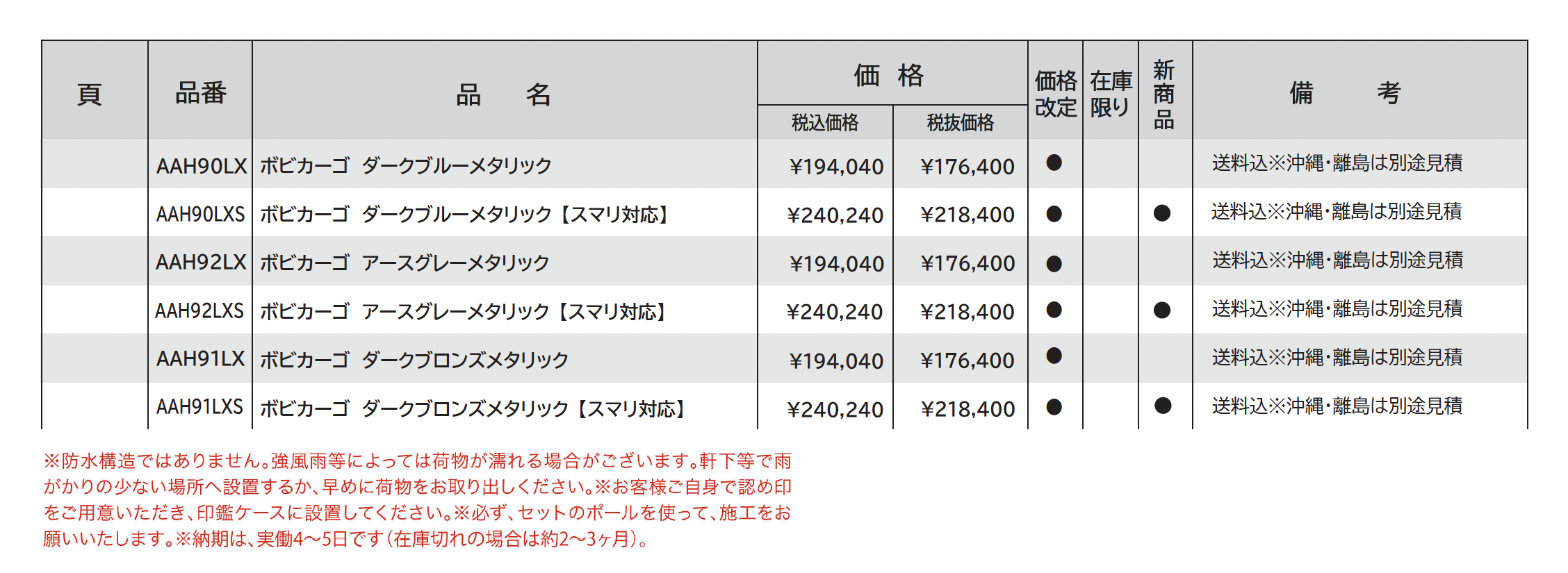 | 標準納期 | 4~5日(在庫切れの場合は約2~3ヶ月) |