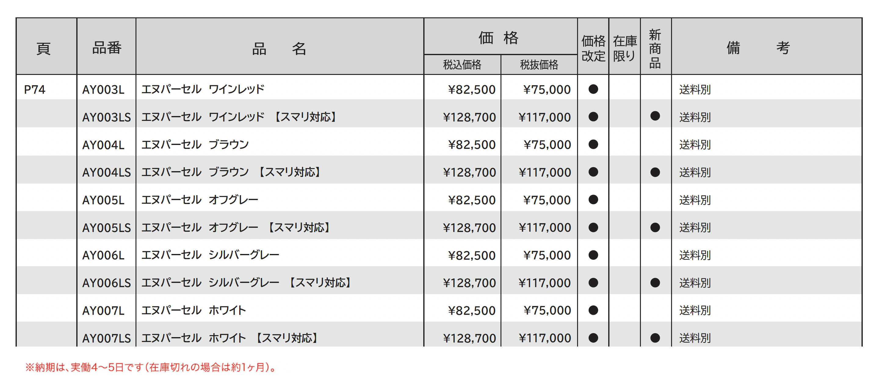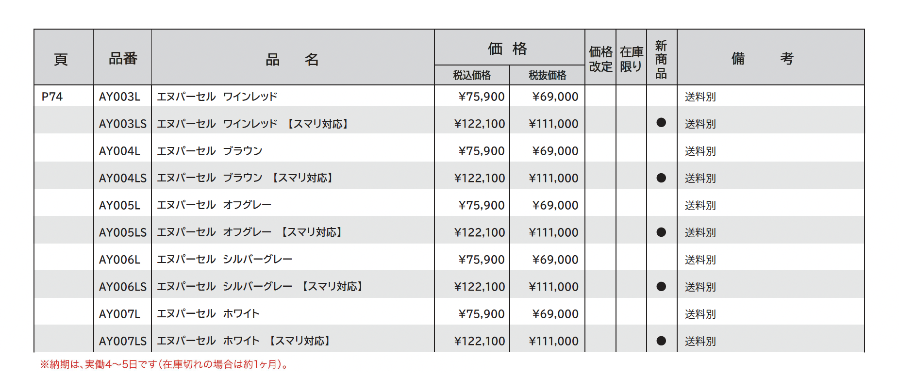 | 標準納期 | 4~5日(在庫切れの場合は約1ヶ月) |