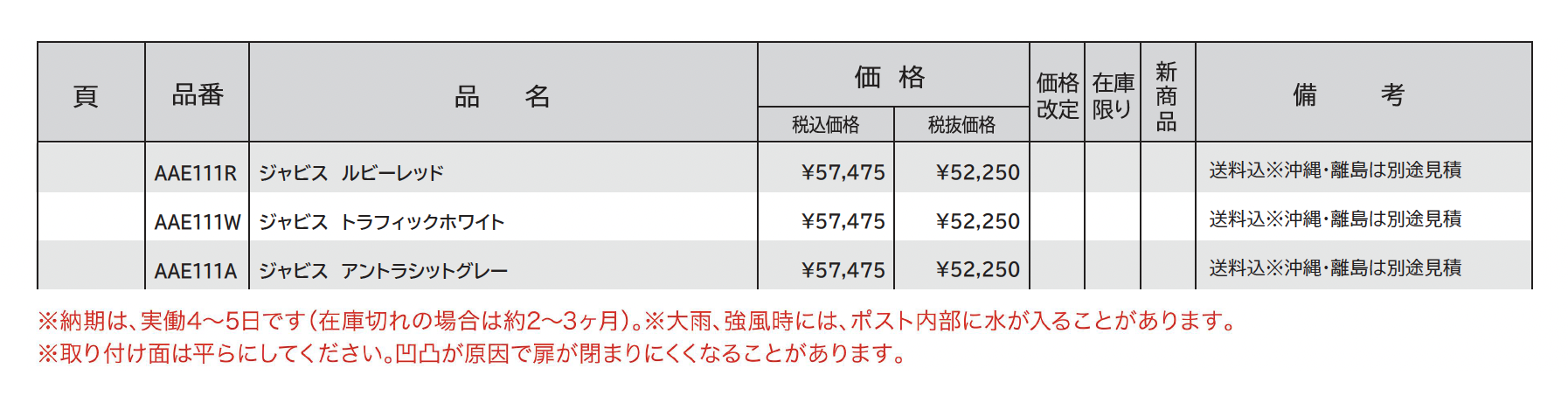| 標準納期 | 4~5日(在庫切れの場合は約2~3ヶ月) |