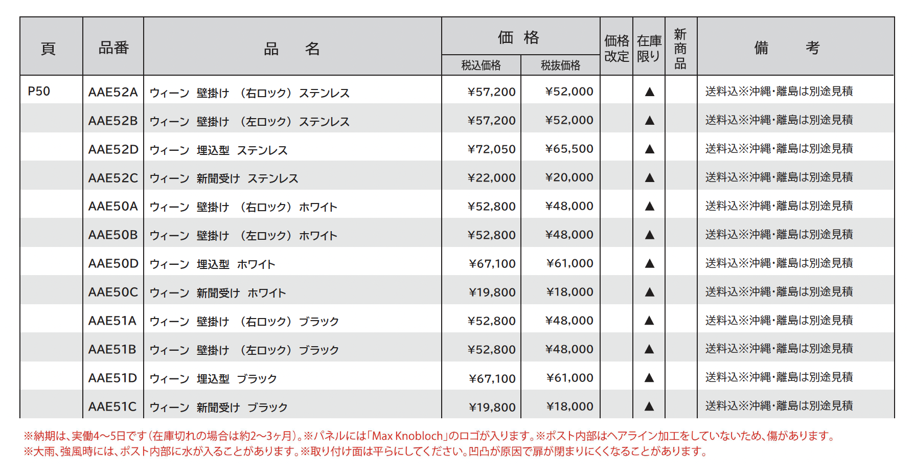 | 材質 | アルミ(パウダーコーティング) ステンレス ステンレス(ヘアライン仕上げ) |