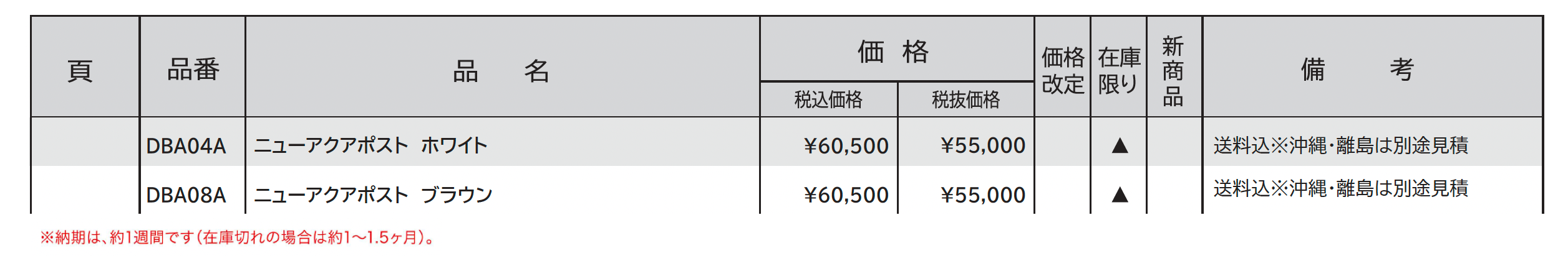 | 標準納期 | 約1週間(在庫切れの場合は1~1.5ヶ月) |