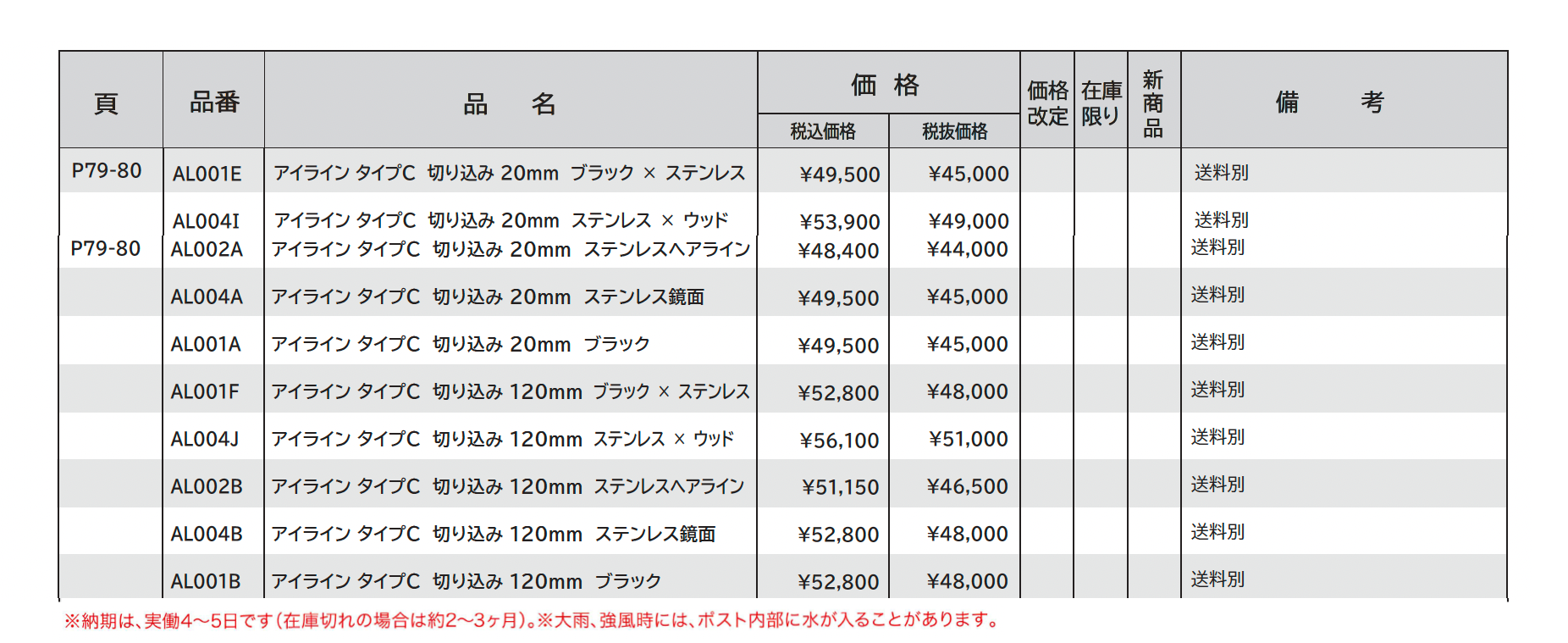 | 新旧品 | アイライン【2024年版】(エクステリア&ガーデンコレクション2023-2024) |