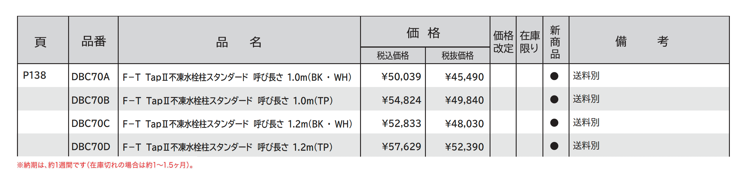 | 標準納期 | 約1週間(在庫切れの場合は1~1.5ヶ月) |