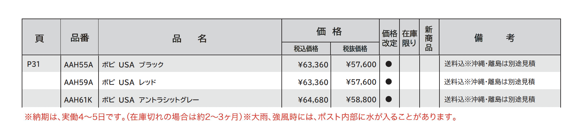 | 標準納期 | 4~5日(在庫切れの場合は約2~3ヶ月) |