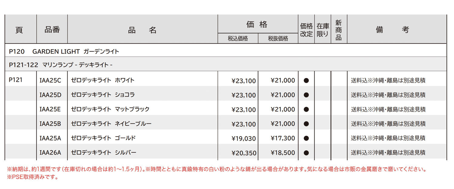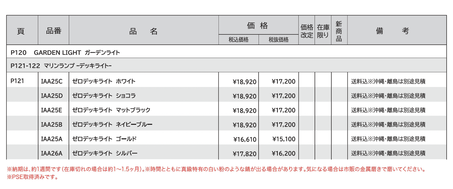 | 新旧品 | マリンランプ ゼロデッキライト【2024年版】(エクステリア&ガーデンコレクション2023-2024) |