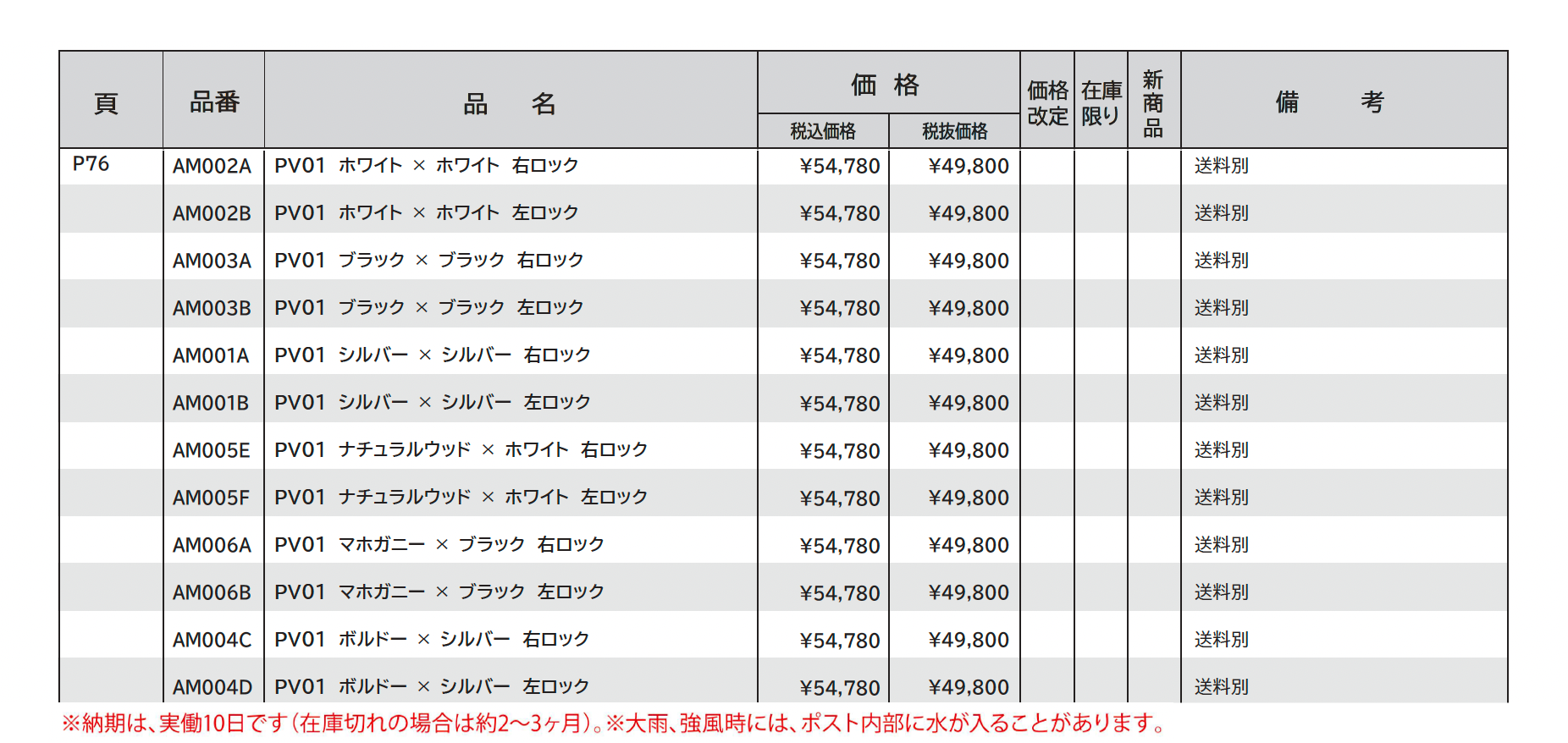 | 新旧品 | PV01【2024年版】(エクステリア&ガーデンコレクション2023-2024) |