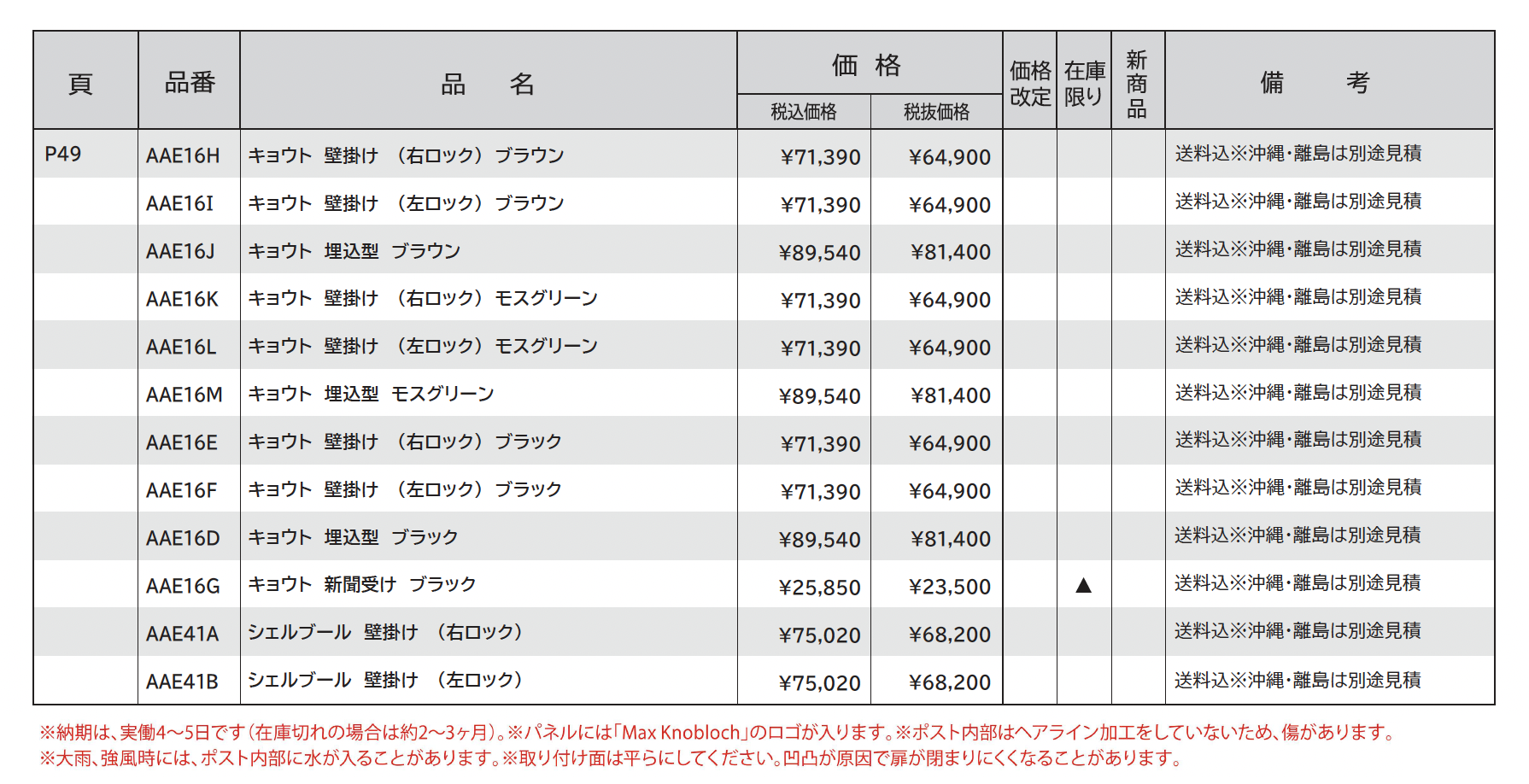 | 標準納期 | 4~5日(在庫切れの場合は約2~3ヶ月) |