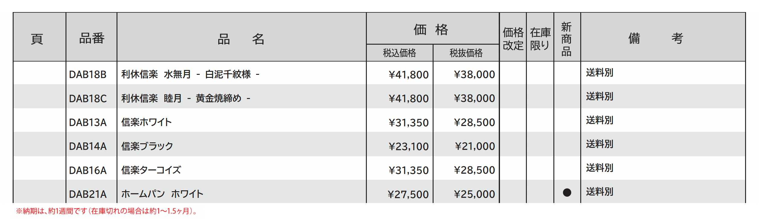 | 標準納期 | 約2週間/1週間(ホームパン) |