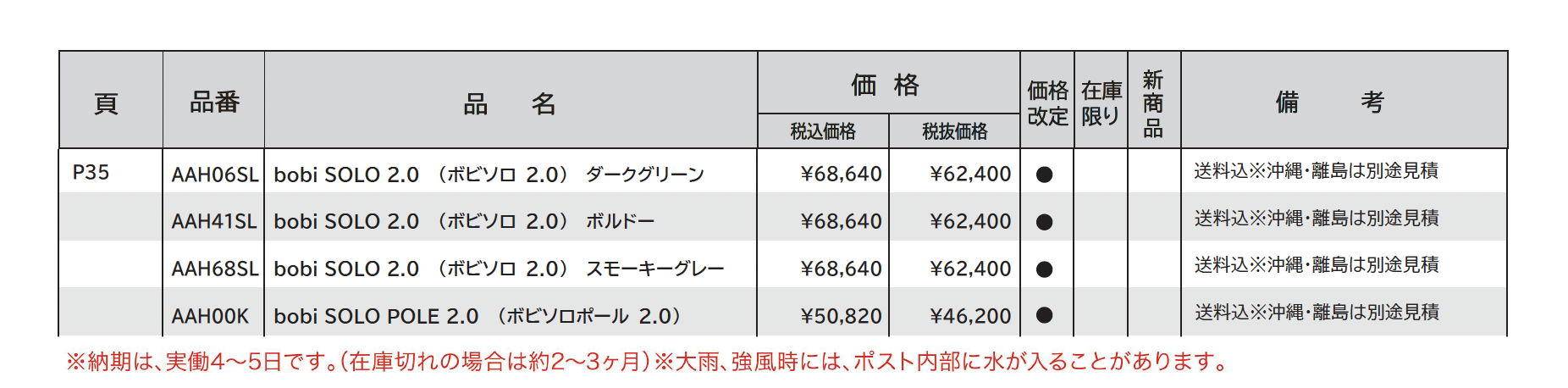 | 新旧品 | ボビソロ2.0(エクステリア&ガーデンコレクション2023-2024) |