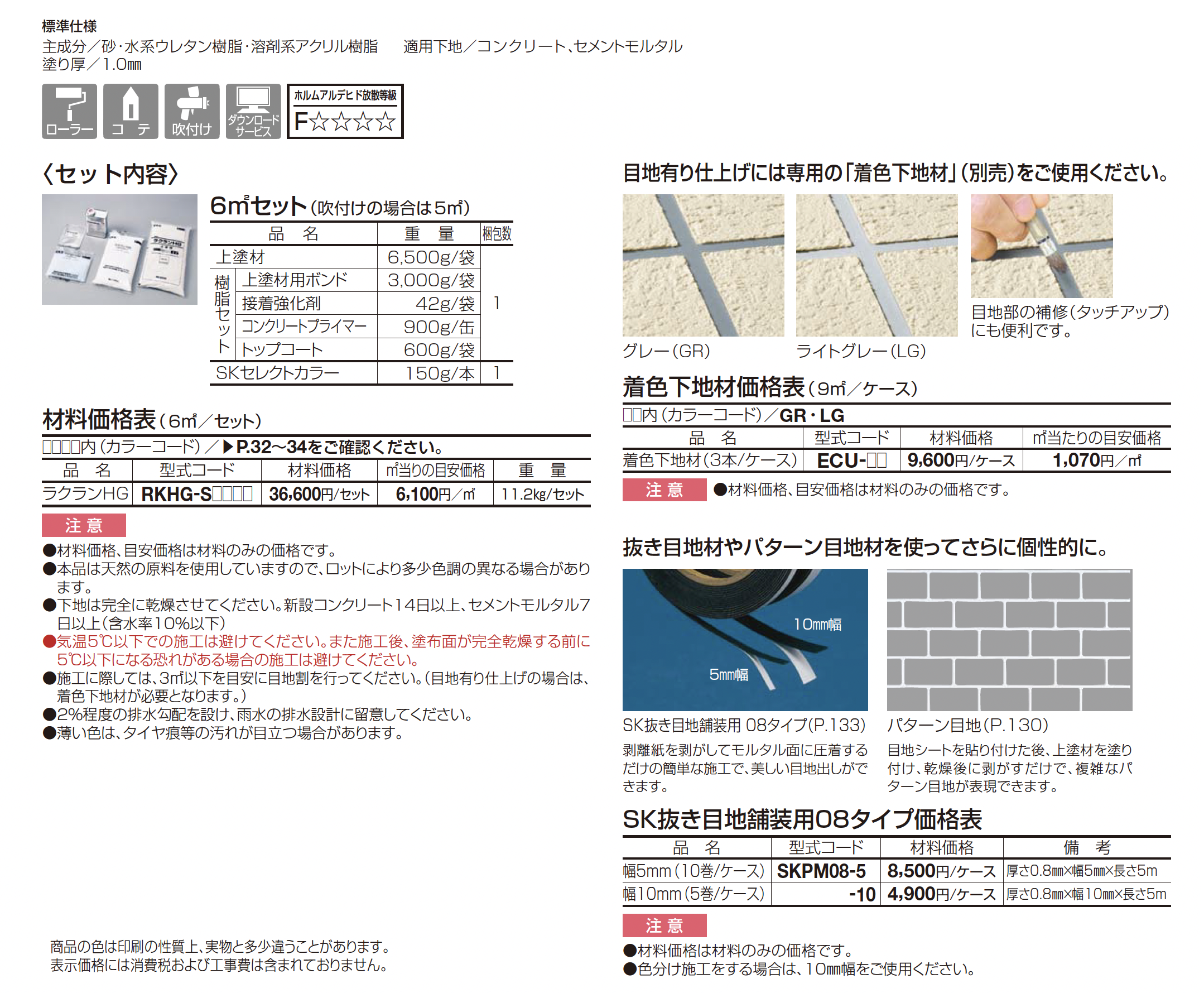 | 材質 | 砂・水系ウレタン樹脂・溶剤系アクリル樹脂 |