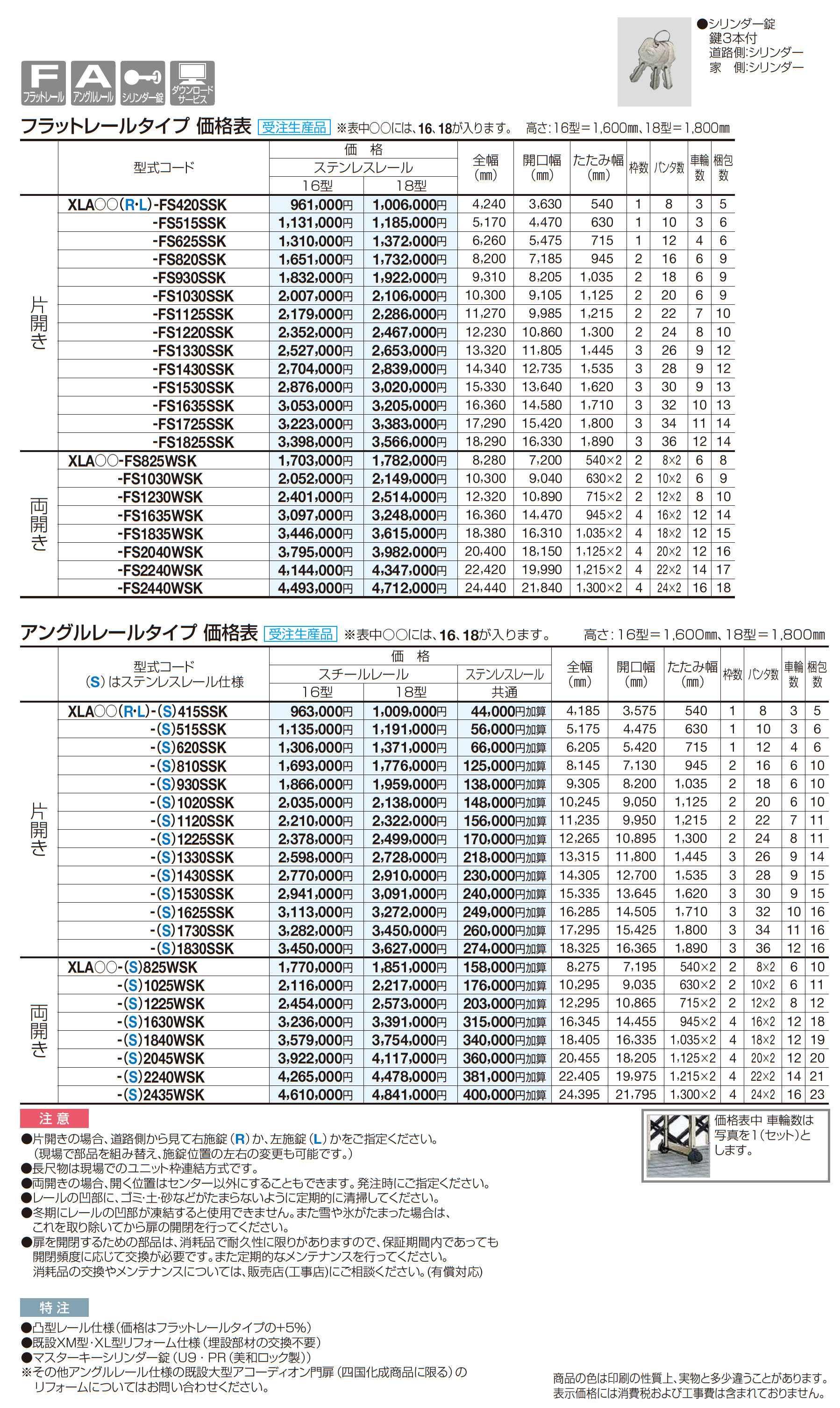 XL-A16型/18型 フラットレールタイプ /アングルレールタイプ【2025年版】(エクステリア総合カタログ 2025年度版)