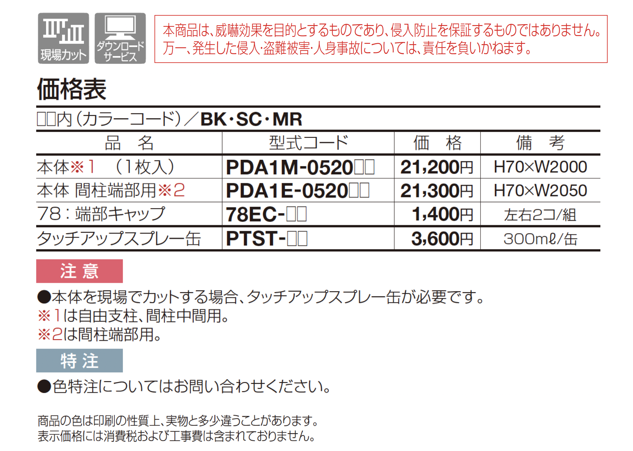 | カラー | BK:ブラックつや消し SC:ステンカラー MR:マットブラウン |