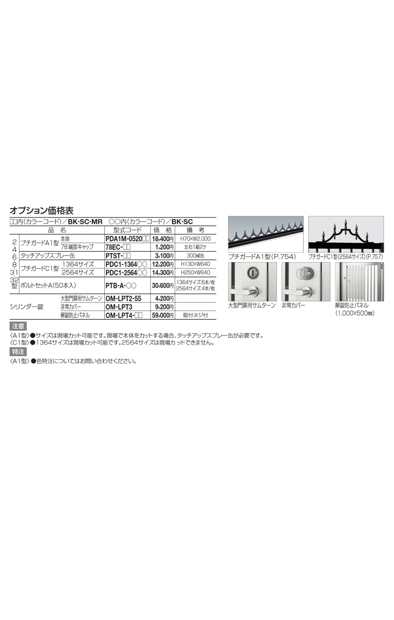 | カラー | BK:ブラックつや消し SC:ステンカラー MR:マットブラウン |