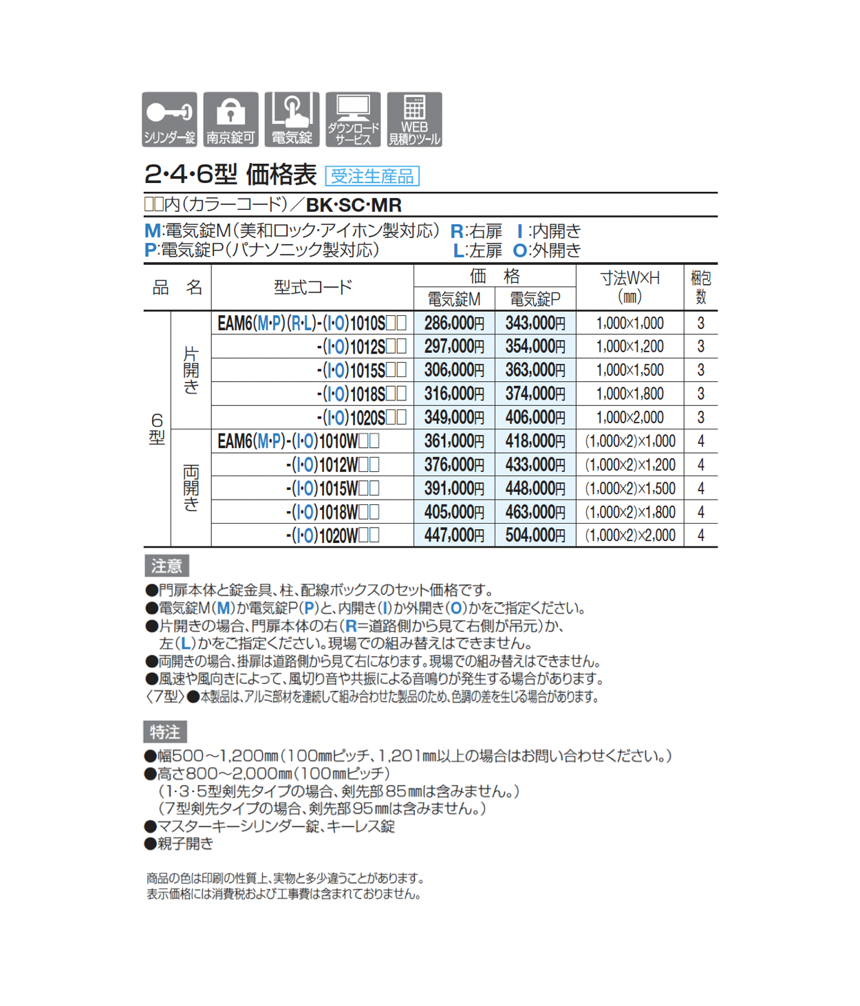 | 新旧品 | 門扉 EAM6型(電気錠仕様)【2024年版】(エクステリア総合カタログ 2024年度版)門扉 EAM6型(電気錠仕様)【2023年版】(エクステリア総合カタログ 2023年度版) |