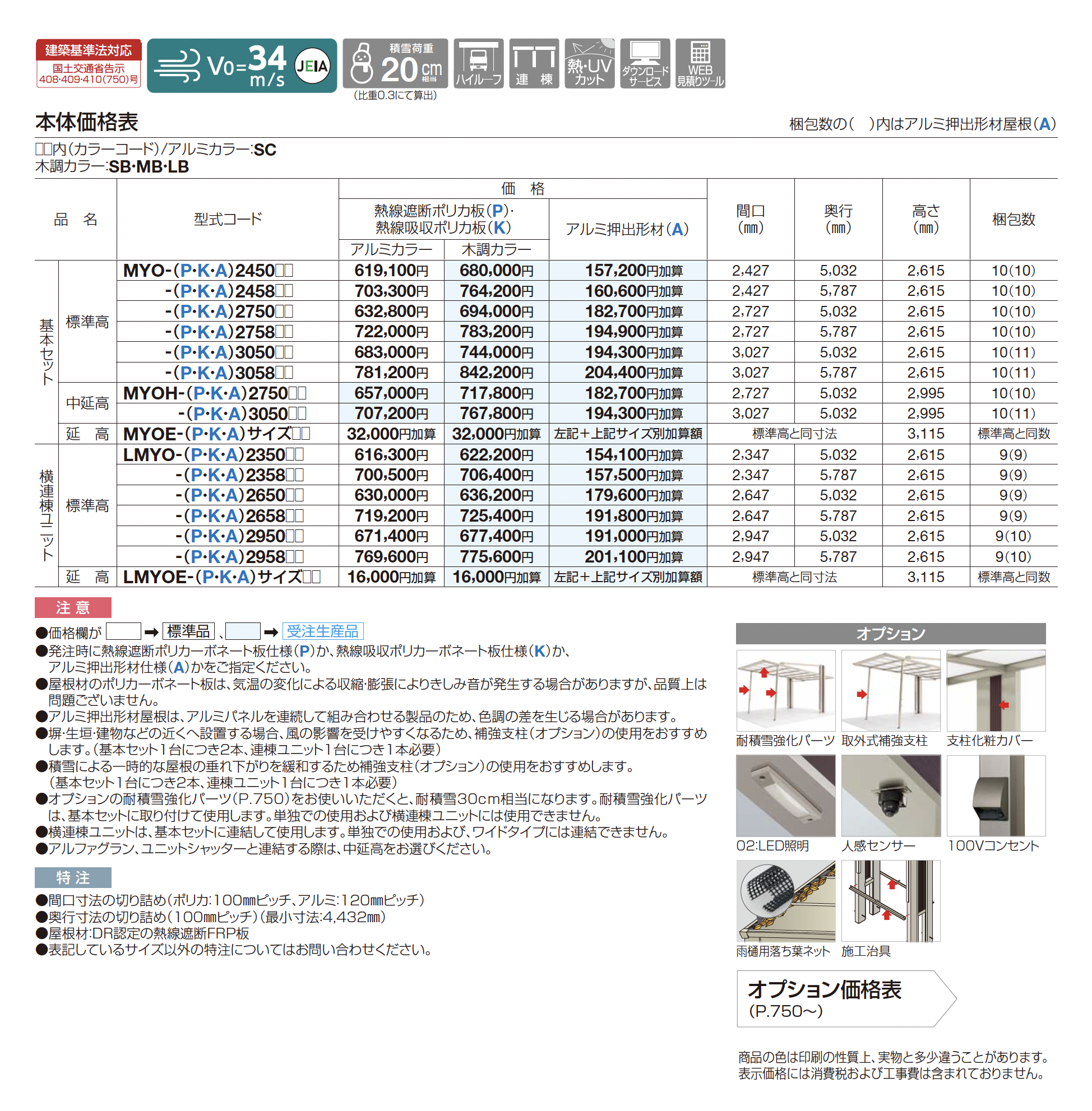 | カラー | SC:ステンカラー+マットブラウン SB:SC+セピアブラウン MB:SC+マロンブラウン LB:SC+ライトブラウン P:熱線遮断ポリカ板(グレースモーク) K:熱線吸収ポリカ板(クリア片面マット) A:アルミ押出形材(不燃材)(ステンカラー) |