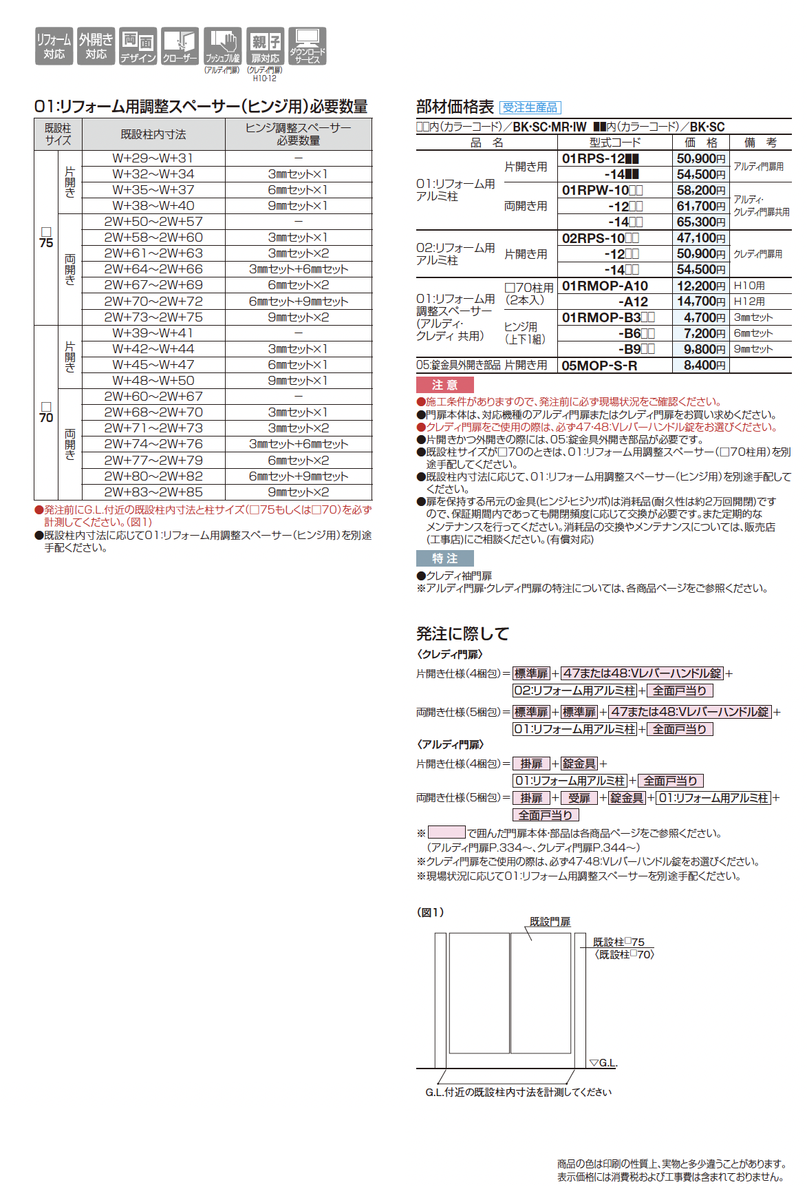 01:リフォーム用アルミ柱(片開き/両開き用)【2023年版】(エクステリア総合カタログ 2023年度版)