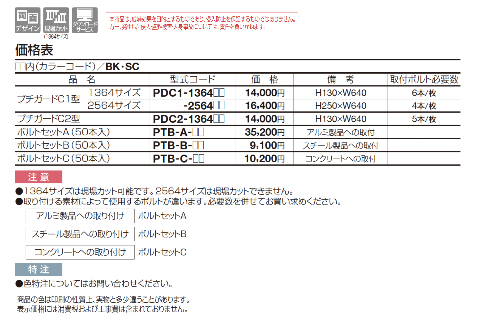 | 新旧品 | プチガードC2型【2025年版】(エクステリア総合カタログ 2025年度版)プチ ガードC2型【2024年版】(エクステリア総合カタログ 2024年度版)プチ ガードC2型【2023年版】(エクステリア総合カタログ 2023年度版) |