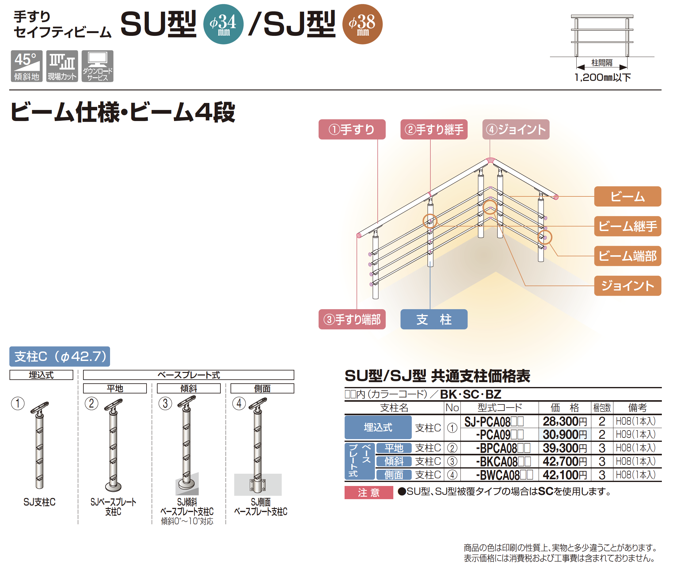 手すり セイフティビーム SU型Φ34mm / SJ型Φ38mm ビーム仕様・ビーム4段【2025年版】(エクステリア総合カタログ 2025年度版)