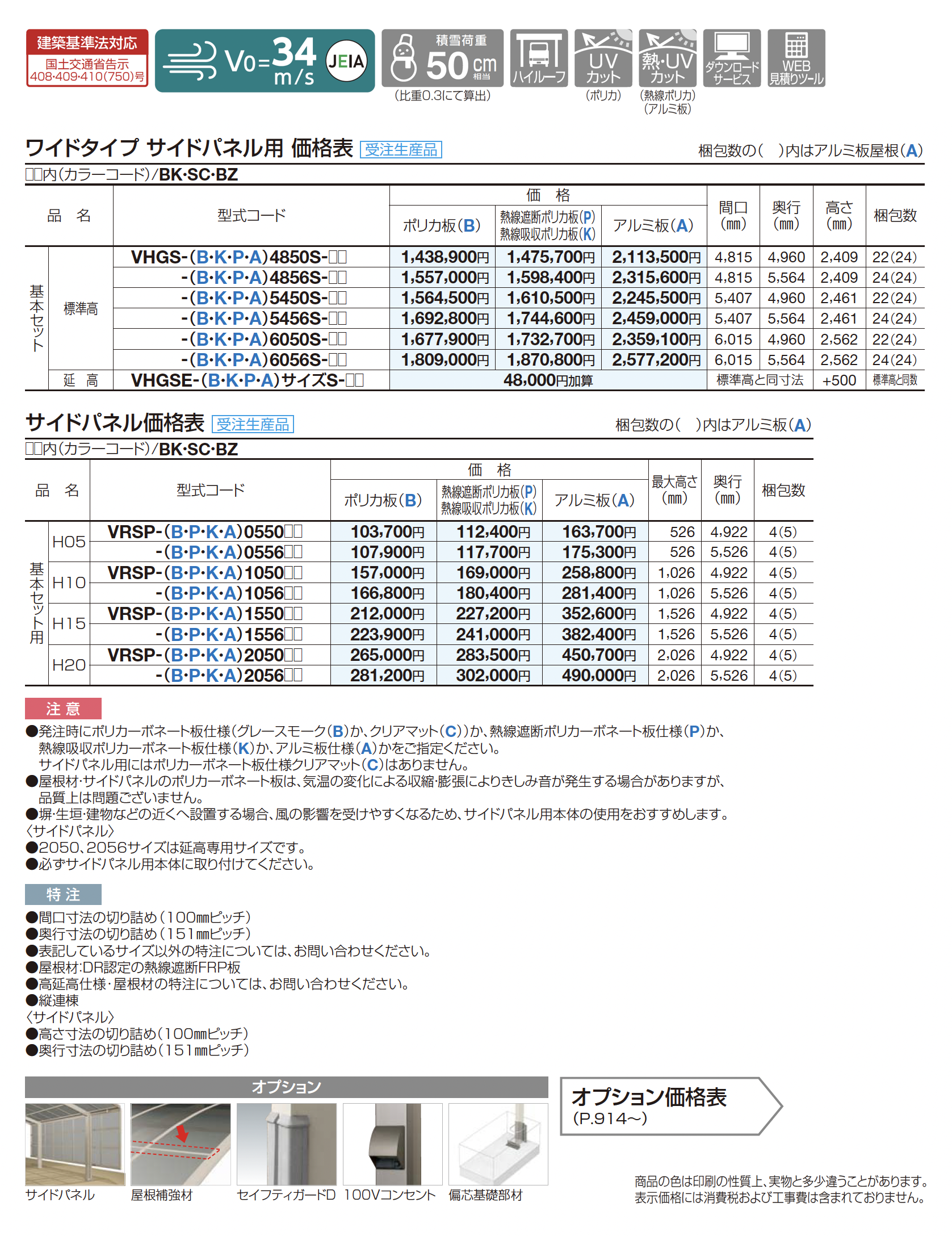 | カラー | BK:ブラックつや消し SC:ステンカラー BZ:ブロンズ B:ポリカ板(グレースモーク) P:熱線遮断ポリカ板(グレースモーク) K:熱線吸収ポリカ板(クリア片面マット) A:アルミ板(不燃材)(ステンカラー) |
