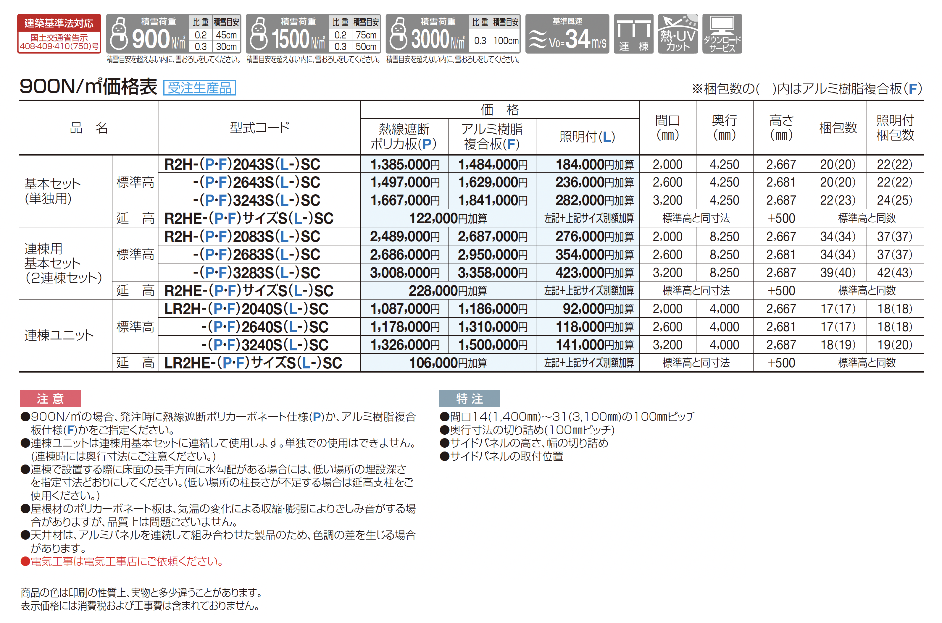 ライズルーフⅡ Hタイプ サイドパネル付(900N/㎡)【2025年版】(エクステリア総合カタログ 2025年度版)