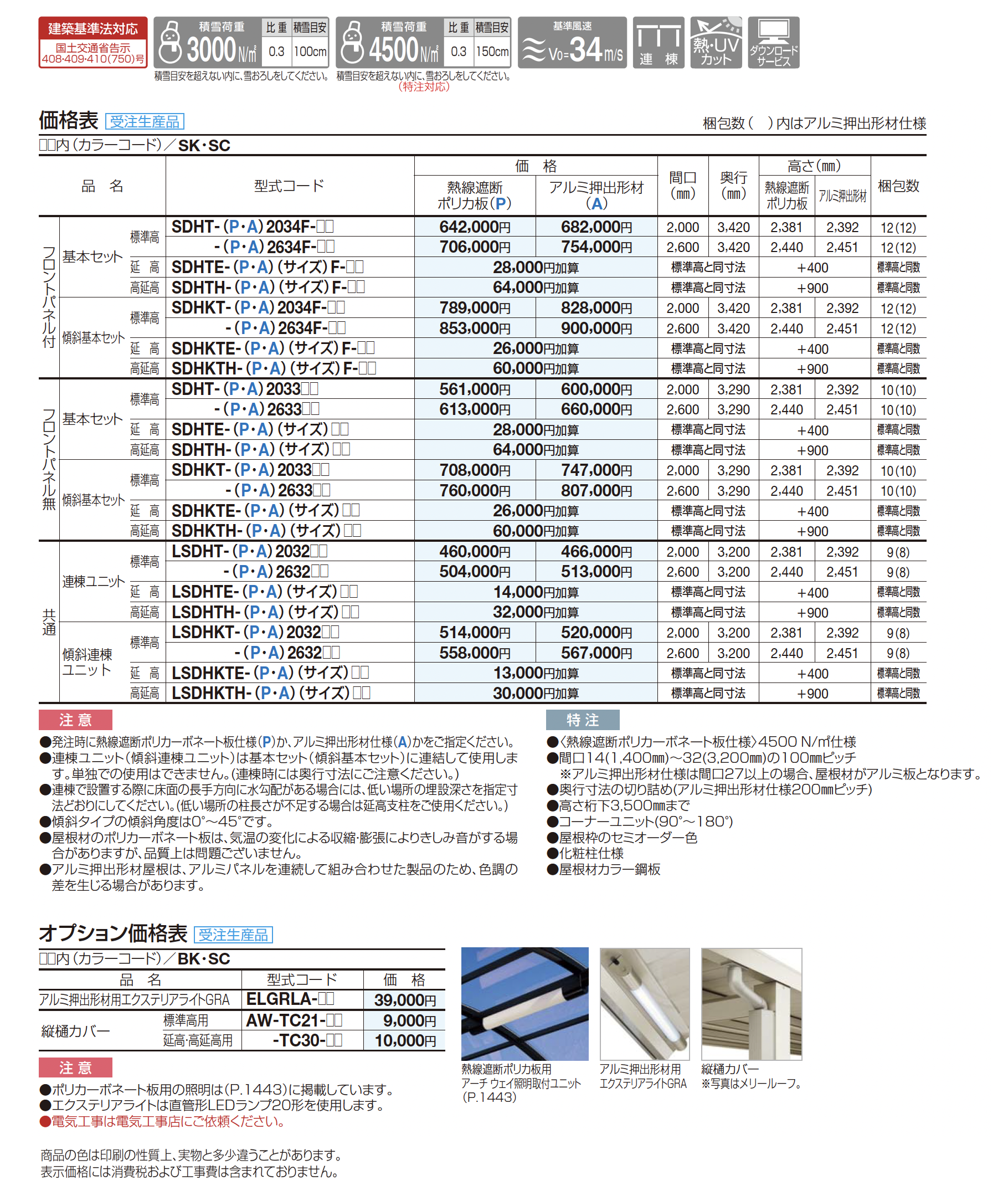 | カラー | SK:ブラックつや消し+ステンカラー SC:ステンカラー P:熱線遮断ポリカ板(グレースモーク) A:アルミ押出形材(不燃材)(ステンカラー) A:アルミ板(不燃材)(ステンカラー) |
