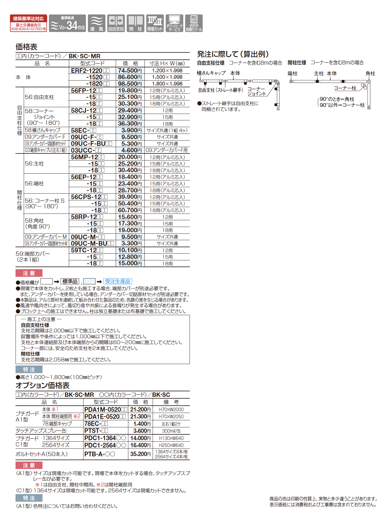 ルーバー フェンス ERF2型(本体・支柱ピッチ2,000㎜)【2024年版】(エクステリア総合カタログ 2024年度版)