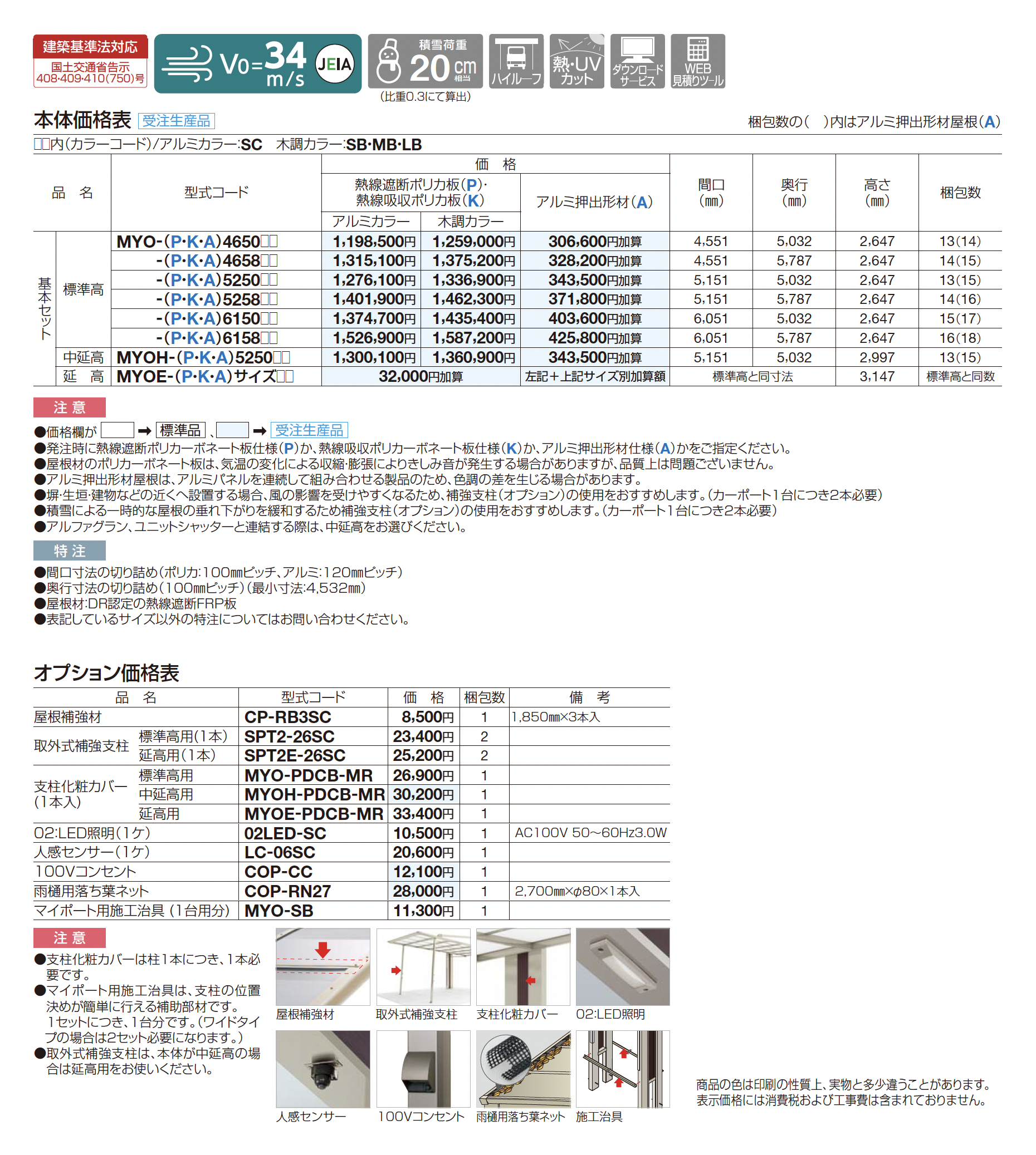 | カラー | SC:ステンカラー+マットブラウン SB:SC+セピアブラウン MB:SC+マロンブラウン LB:SC+ライトブラウン P:熱線遮断ポリカ板(グレースモーク) K:熱線吸収ポリカ板(クリア片面マット) A:アルミ押出形材(不燃材)(ステンカラー) |