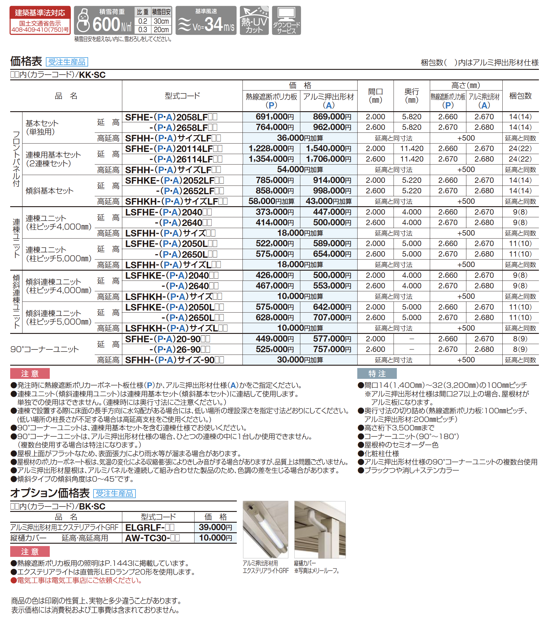 | カラー | KK:オールブラック SC:ステンカラー 熱線遮断ポリカ板 アルミ押出形材(不燃材) アルミ押出形材(不燃材) |