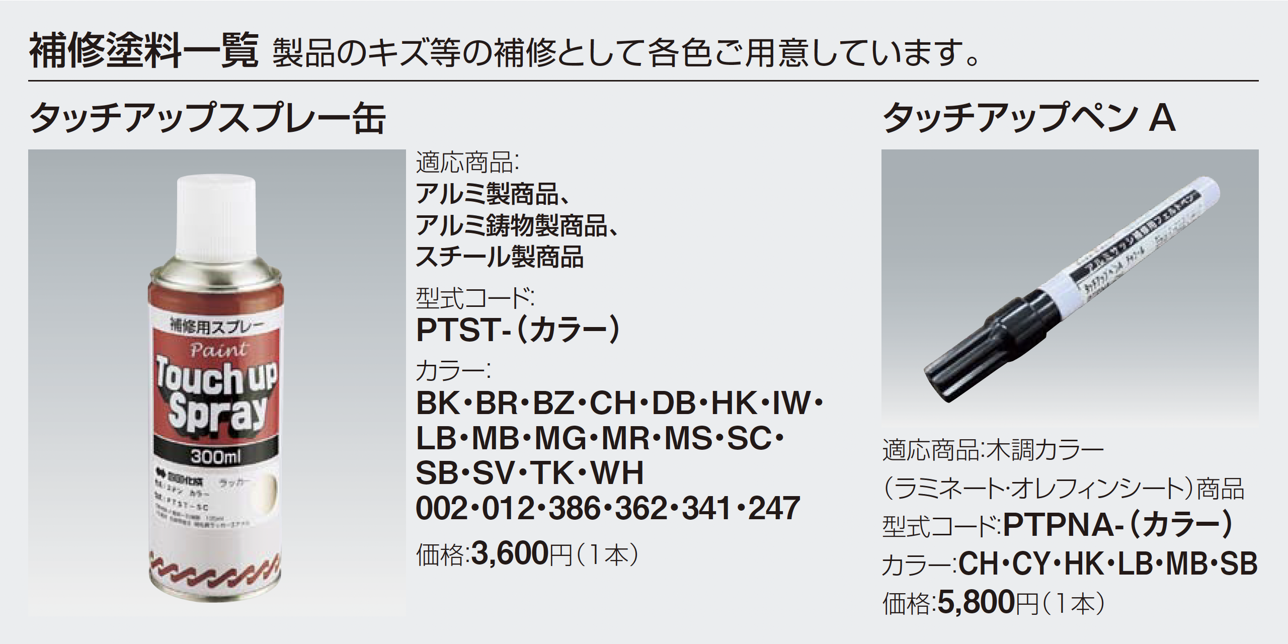 タッチアップスプレー缶【2024年版】(エクステリア総合カタログ 2024年度版)
