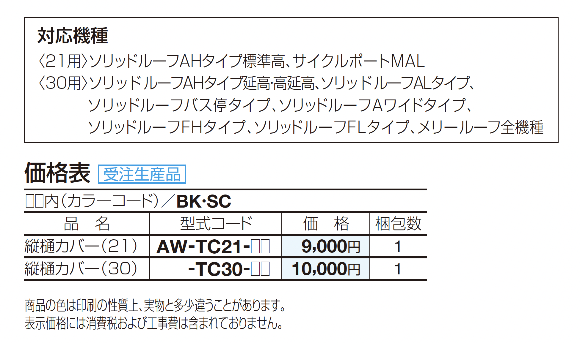 | カラー | BK:ブラックつや消し SC:ステンカラー |