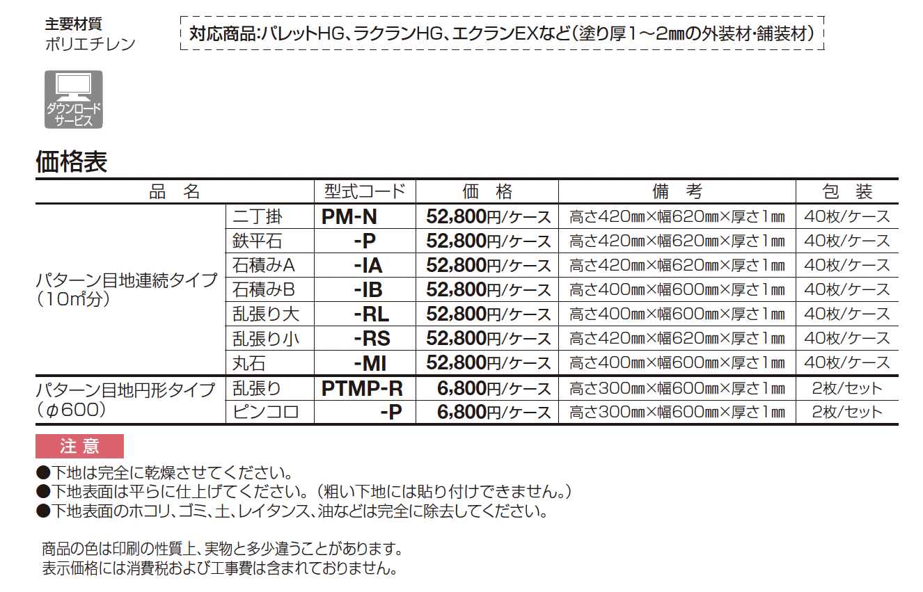 | 新旧品 | パターン目地【2025年版】(エクステリア総合カタログ 2025年度版)パターン目地【2024年版】(エクステリア総合カタログ 2024年度版)パターン目地 連続タイプ【2023年版】(エクステリア総合カタログ 2023年度版) |